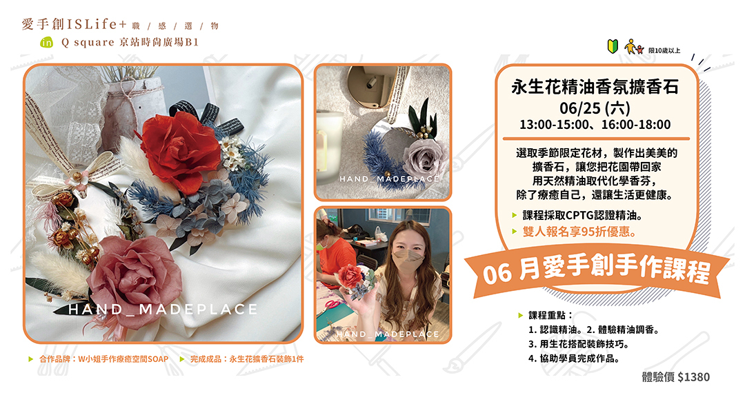 【京站店6月精選手作課程】永生花精油香氛擴香石