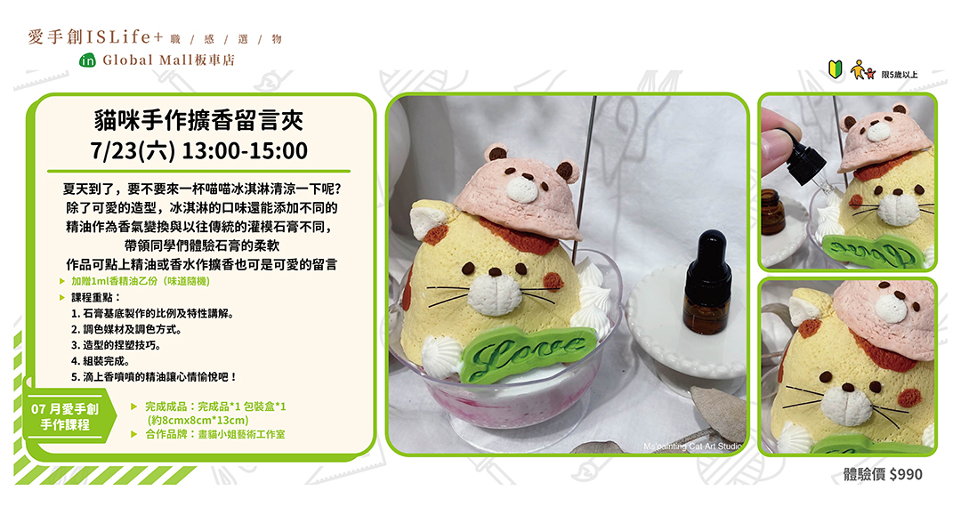 【板車店7月精選手作課程】貓咪手作擴香留言夾
