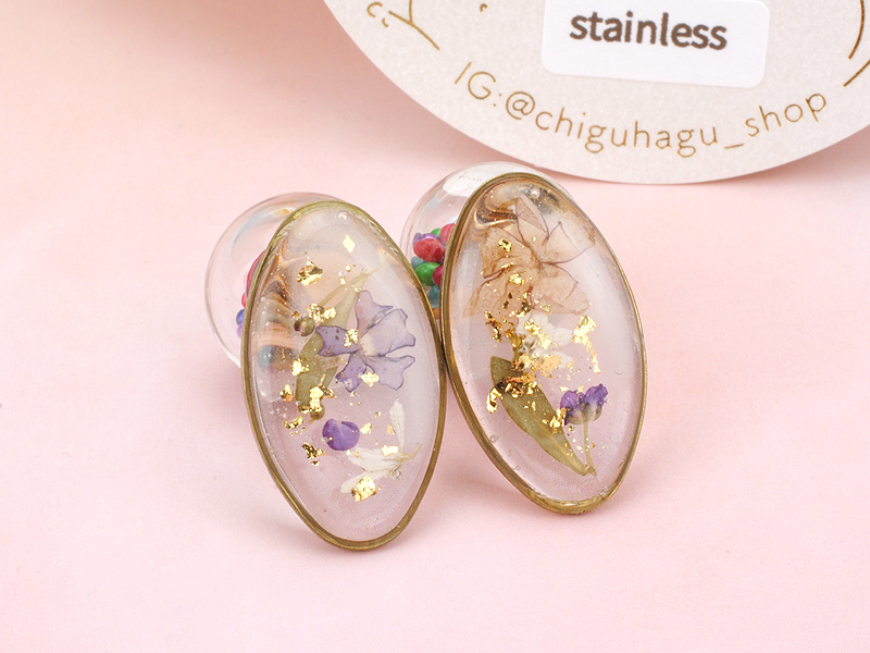 《chiguhagu》フラワー ピアス乾燥花耳環 耳針式