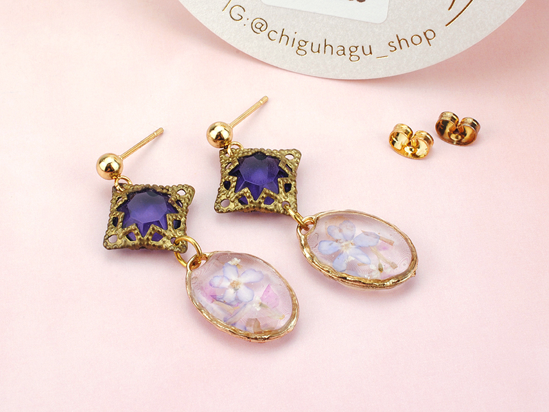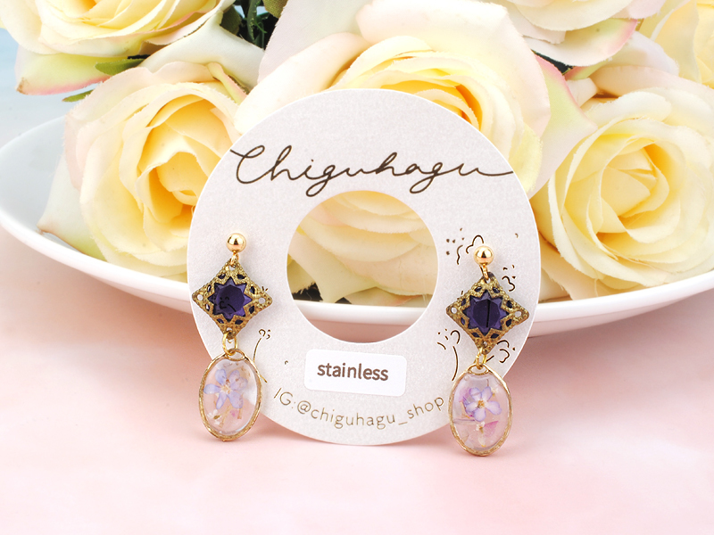 《chiguhagu》フラワー ピアス乾燥花耳環 耳針式