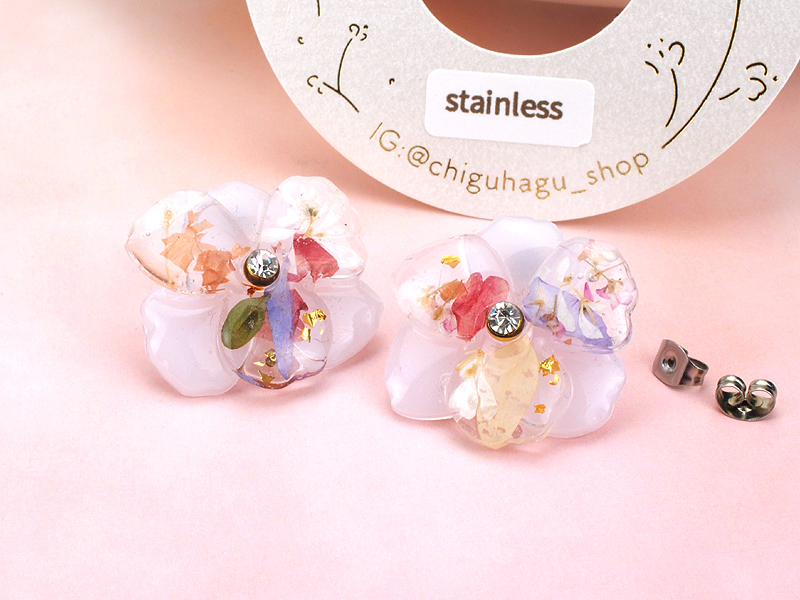 《chiguhagu》フラワー ピアス乾燥花耳環 耳針式