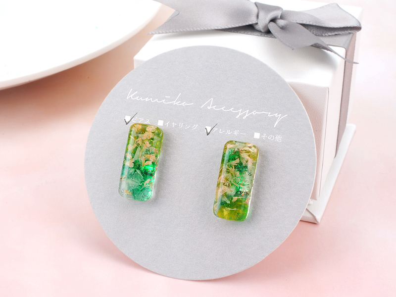 レジンの中に花びらを詰め込んで、カラフルに着色された一点物。